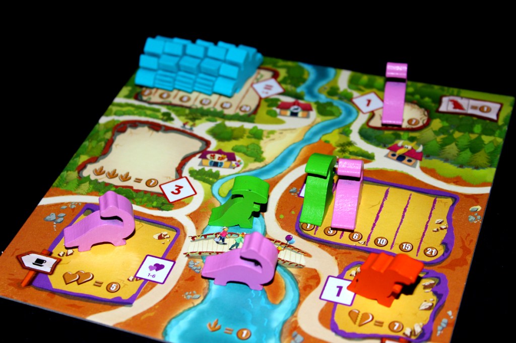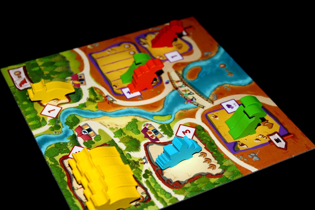 As dinosaur theme park proprietors, players take turns choosing from colorful dinosaur meeples in order to build up a variety of delightful dino destinations. Each part of the park has different scoring conditions, so players have to make quick decisions about which dinosaur goes where.