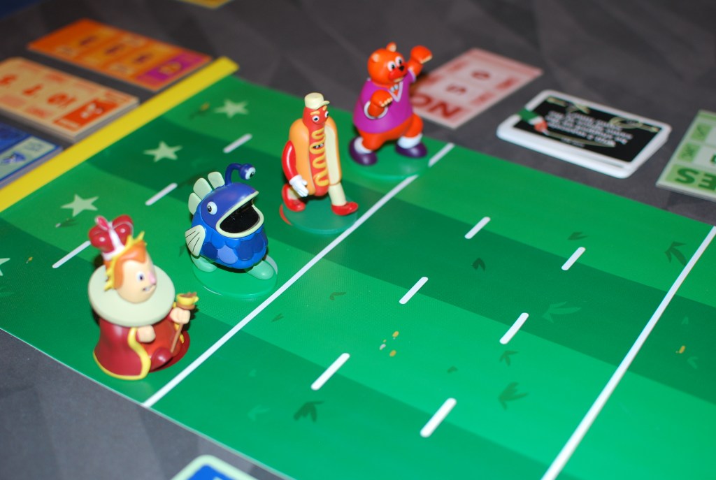 Casual games do have one major thing in common with Early Gamers, as a category: table presence. Don’t get us wrong; Strategy and Complex Games both have a claim to fame for table presence, and some of those Complex Games can take up a table. But when you’ve got folks walking by and asking about a game, it’s usually because there’s a weird moonwalking fish or a terrifyingly large baby, both of which appear in this year’s American Tabletop Award winners. It’s been a weird year; cut us some slack. In Hot Streak, players are likely-degenerate gamblers who have found their new money pit: those mascot races you likely remember from a weird inning interlude of a baseball game. You’re really into the races; they’re all you can talk about. As you bet, they race somewhat on their own, aided (or hindered) slightly by one card from each player secretly placed into the race deck.