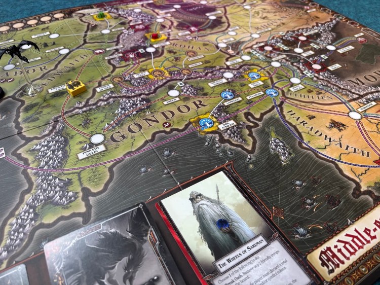 People are really into Lord of the Rings lately. It’s usually either a resurgence in popularity or an expansion of existing licensing agreements, and this time it seems to be a little bit of both. No judgment! Just an observation. If you’re into Lord of the Rings, that’s essentially a Golden Age for you. If you’re just friends with someone who’s into Lord of the Rings, well, you have our sympathies. Either way, two well-loved tastes combine in this spin-off of the Pandemic system for Lord of the Rings: Fate of the Fellowship! Once Matt Leacock got his head around how to spin off the Pandemic system, that also exploded. Nobody seems particularly mad about it, though. Here, your goal is pretty simple: destroy the One Ring. Usually, at least: there are plenty of other objectives you can do along the way. Fans of either franchise will notice a lot of similar elements here, but the marriage of the two seems to have created a compelling and unique experience.